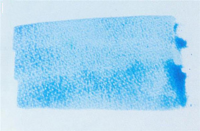 纸的倾斜度不大,颜料流动缓慢,从颜料浓厚的区域开始沉积在纸上。